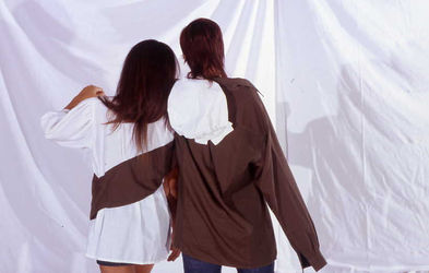 Elisa Baldassarri wants that the garments made have "traces" of each other, like two people who embrace and then move away, leaving one on top of the other a trace. Concretely, it can be a sleeve, which remains in the position of the gesture of the embrace "impresses" the other shirt. During her internship with the designer Geoffrey B Small she was able to study the creation of this collection, choosing to make clothes with recycling. So Elisa bought some garments at the La Montagnola market in Bologna and she found other garments in her wardrobe, thus creating her small, completely recycled and sustainable collection. Elisa Baldassarri's intent was to demonstrate the intervention on a garment used to get new items.